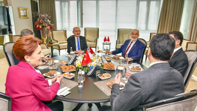 6'lı masa İYİ Parti Genel Başkanı Meral Akşener'in ev sahipliğinde 11'inci kez toplandı. Edinilen bilgilere göre; Altılı Masa’nın İYİ Parti Genel Merkezi’nde saat 12.00’de başlayan toplantısı, yaklaşık 10 saat sürdü. İYİ Parti Genel Başkanı Meral Akşener’in ev sahipliğindeki toplantıya, CHP Genel Başkanı Kemal Kılıçdaroğlu, DEVA Partisi Genel Başkanı Ali Babacan, Gelecek Partisi Genel Başkanı Ahmet Davutoğlu, Saadet Partisi Genel Başkanı Temel Karamollaoğlu ve Demokrat Parti Genel Başkanı Gültekin Uysal katıldı.
