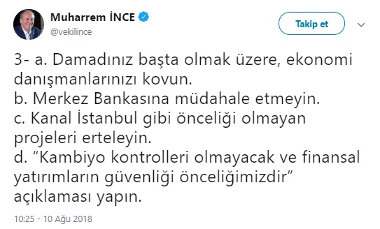 Muharrem İnce, bu sabah Cumhurbaşkanı Erdoğan’a yaptığı çağrılardan sonra, geçtiğimiz haftaalrda konu ile alakalı paylaşmış olduğu Tweet’lerini tekrar paylaşarak konunun önemini vurguladı.