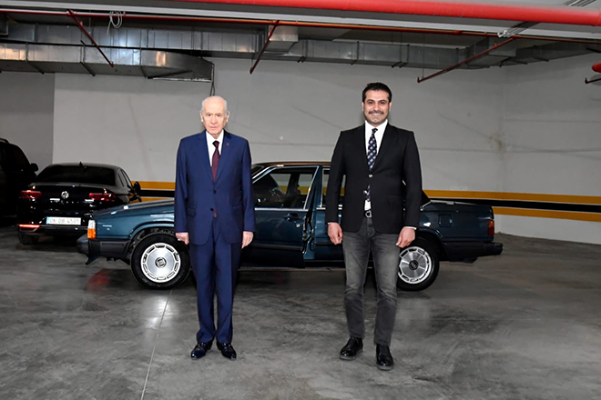 Klasik araba tutkunu MHP Genel Başkanı Devlet Bahçeli, koleksiyonundaki bir aracı daha hediye etti. Edinilen bilgilere göre; Bahçeli, 31 Mart yerel seçimlerinde Cumhur ittifakının Beşiktaş adayı olan Serkan Toper'e jest yaptı ve Beşiktaş Jimnastik Kulübü'nün simgesi "BJK" olan otomobilin anahtarlarını kendisine verdi.