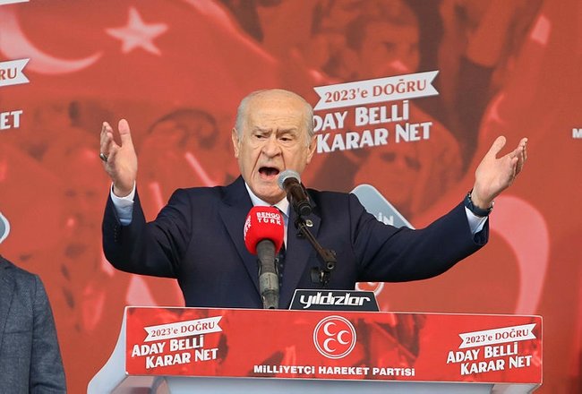 Türkiye'de 2023'te tarihi bir seçim yapılacağına işaret eden Bahçeli, "Artık bütün yollar 2023 seçimlerine açılmaktadır. Vakit anbean yaklaşmakta, çember günbegün daralmaktadır. Bizim adayımız belli, kararımız nettir. Cumhurbaşkanı adayımız Sayın Recep Tayyip Erdoğan'dır. Hedefimiz Sayın Recep Tayyip Erdoğan'ın açık ara farkla tekrar Cumhurbaşkanı seçilmesi, TBMM'de milletvekili sayısı ve siyasal destek itibarıyla çok güçlü bir Milliyetçi Hareket Partisi grubunun ve Cumhur İttifakı'nın tezahür etmesidir. Samimi ve kesintisiz mücadelemizin gayesi bu amaçlara ulaşmaktır." değerlendirmesinde bulundu.