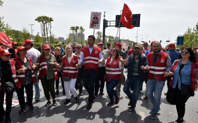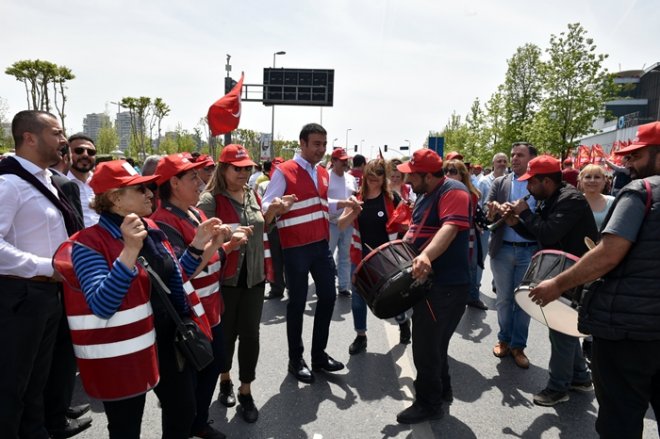 İstanbul’da 1 Mayıs Emek ve Dayanışma Günü kutlamalarının bu yıl ki adresi Bakırköy Halk Pazarıydı. Binlerce işçi 1 Mayıs’ı davullar ve zurnalar eşliğinde kutlarken bayramda renkli görüntüler ortaya çıktı. CHP Beşiktaş İlçe Örgütü’de kutlamalara katıldı. Zeytinburnu’ndan yürüyerek alana gelen örgüte Beşiktaş Belediye Başkanı Rıza Akpolat’ta eşlik etti. Başkan Akpolat, işçilerle alanda davullu zurnalı kutlamalara katılıp halay da çekti.