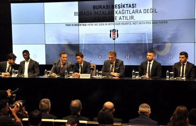 Beşiktaş Başkanı Fikret Orman’nın katılımı ile siyah-beyazlı futbol takımının yeni transferleri Shinji Kagawa, Burak Yılmaz, Nicolas Isimat Mirin ve Muhayer Oktay için Vodafone Park’ta imza töreni düzenlendi. Beşiktaş JK Asbaşkan, Transfer Komitesi Başkanı, Vodafone Park’tan Sorumlu Yönetim Kurulu Üyesi Umut Güner, Genel Sekreter, İcra Kurulu Başkanı Ahmet Ürkmezgil, Muhasip Üye, Basketboldan Sorumlu İcra Kurulu Üyesi Ahmet Cihat Kumuşoğlu, Pazarlama ve Yeni Projelerden Sorumlu Yönetim Kurulu Üyesi, E-Spor’dan Sorumlu İcra Kurulu Üyesi Hüseyin Yücel, BJK Nevzat Demir Tesisleri ve Futbol A Takımından Sorumlu Yönetim Kurulu Üyesi Ahmet Kavalcı ve Kartal Yuvalarından Sorumlu İcra Kurulu Üyesi Hüseyin Mican imza törenine katıldı.
