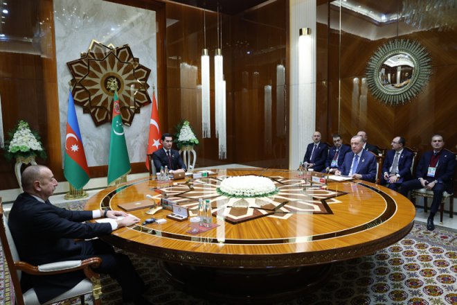 Türkiye-Azerbaycan-Türkmenistan Devlet Başkanları Zirvesi vesilesiyle Türkmenistan’da bulunan Cumhurbaşkanı Recep Tayyip Erdoğan, Azerbaycan Cumhurbaşkanı İlham Aliyev ile bir araya geldi.