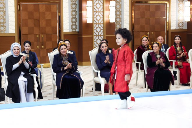 Cumhurbaşkanı Recep Tayyip Erdoğan'ın eşi Emine Erdoğan, Türkmen El Sanatları Sergisi'ni gezdi, yerel kıyafetlerin sergilendiği defileyi izledi.