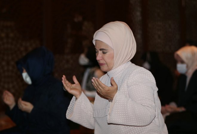 Burada Cuma namazına iştirak eden Emine Erdoğan’a; Aile, Çalışma ve Sosyal Hizmetler Bakanı Zehra Zümrüt Selçuk, Ticaret Bakanı Ruhsar Pekcan, TBMM Başkanı Mustafa Şentop'un eşi Sabriye Şentop, Kültür ve Turizm Bakanı Mehmet Nuri Ersoy'un eşi Pervin Ersoy ve İstanbul Valisi Ali Yerlikaya'nın eşi Hatice Nur Yerlikaya, gazeteciler, yazarlar, akademisyenler, sivil toplum kuruluşlarının temsilcileri, şehit eşleri ve anneleri, gaziler ve birçok kadın eşlik etti.