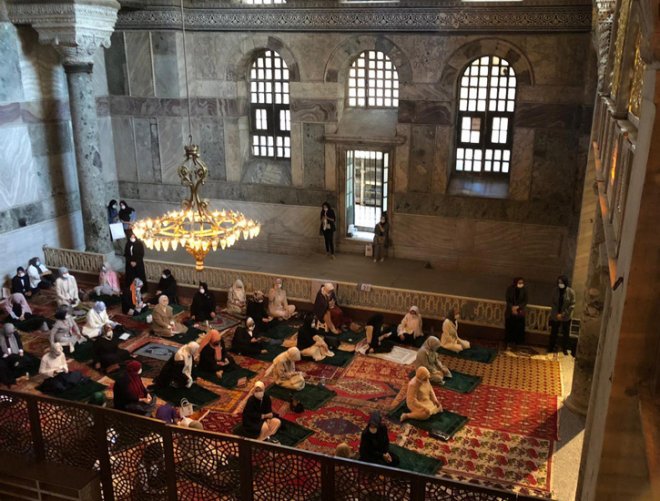 Cumhurbaşkanı Recep Tayyip Erdoğan'ın eşi Emine Erdoğan beraberindeki kadınlarla, 86 yıl sonra ibadete açılan Ayasofya-i Kebir Cami-i Şerifi'ndeki Cuma namazına iştirak etti. Ayasofya-i Kebir Cami-i Şerifi'nin açılışı dolayısıyla kılınan ilk Cuma namazına kadınlar, kendileri için ayrılan alandan katıldı.