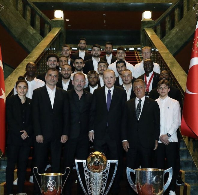 Cumhurbaşkanı Erdoğan, Beşiktaş JK Yönetim Kurulu Başkanı Ahmet Nur Çebi, Teknik Direktör Sergen Yalçın ve futbolcuları tebrik ederek, sohbet etti.