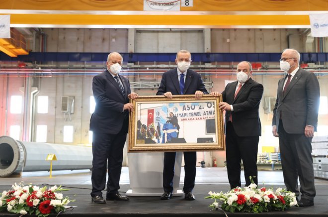 Temelini 2005 yılı Şubat ayında kendisinin attığı Ankara Sanayi Odası 2. Organize Sanayi Bölgesi'nin vizyonlarının ürünü olduğuna dikkati çeken Cumhurbaşkanı Erdoğan, şöyle devam etti: "Bu bölge 16 yıl önce çorak bir araziyken attığımız adımlar sayesinde bugün yaklaşık 11 milyon metrekare bir alanda 111 firmaya ev sahipliği yapan örnek bir üretim üssüne dönüşmüştür. Türkiye'nin kapasitesini, Türk sanayisinin gücünü görmek isteyenleri, sırça köşklerinden ahkâm kesmek yerine gelip burayı gezmeye davet ediyorum. Rabbimden savunma sanayisinden otomotive, elektronikten sağlığa, enerjiden talaşlı imalata kadar farklı alanlarda üretim yapacak bu fabrikalarımızın vatanımıza, milletimize hayırlı olmasını diliyorum. Bu yatırımların Türkiye'ye kazandırılmasında emeği geçen Sanayi ve Teknoloji Bakanımız ve ekibini, organize sanayi bölgesi yönetimini ve elbette iş dünyamızın babayiğitlerini canı gönülden tebrik ediyorum."