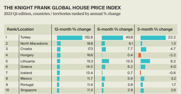 Knight Frank'ın dünyadaki 150 kenti kapsayan global konut fiyatları endeksi 2023 ilk çeyrek sonuçlarına da Türk şehirleri damga vurdu.