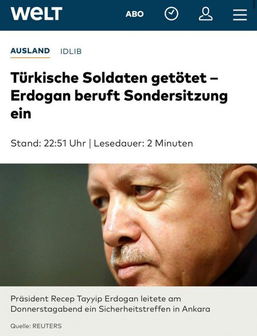 Der Spiegel ve Die Welt, saldırıda şehit sayısının artabileceğini vurgularken, Merkür’de de Putin’in Suriye zirvesini reddettiği ve kararın ardından Türk askerinin vurulduğu bilgisi hatırlatıldı.