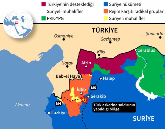Habere göre Türk yetkili, Türk askerlerine bölgede haftalardır yapılan hava saldırılarının Suriye rejimi tarafından kullanılan Rus savaş jetleriyle yapıldığını söyledi. Haberde gazete, Rus tarafının olayla ilgili yorumda bulunmadığı da belirtti.
