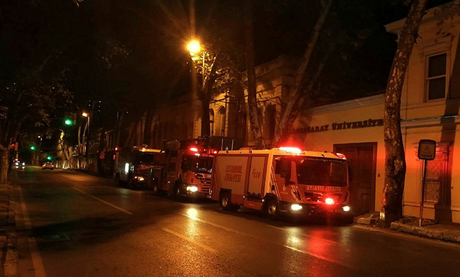 Çırağan Caddesi üzerinde bulunan Galatasaray Üniversitesi’nde dün gece saat 02:15 sıralarında yangın çıktı. Çıkan yangın kısa süreli paniğe sebep oldu. Edinilen bilgiye göre yangın, üniversite binası içindeki bir yerden bilinmeyen sebeple çıktı. Yangın alarmını duyan görevliler durumu hemen itfaiye ekiplerine haber verdi. İhbar üzerine olay yerine çok sayıda itfaiye aracı ve itfaiye görevlisi sevk edildi.
