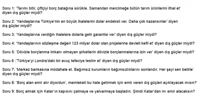 CHP Genelbaşkanı Kemal Kılıçdaroğlu, Parti Meclisi toplantısından önce yaptığı konuşmada, Cumhurbaşkanı Erdoğan’a gittiği her yerde sormasını söylediği 9 soru yöneltti: