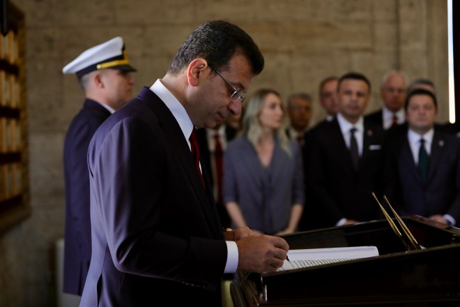 Saygı duruşunun ardından İmamoğlu, Anıtkabir Özel Defteri’ni imzaladı ve yazdığı satırladı okudu. İmamoğlu, deftere şöyle yazdı: