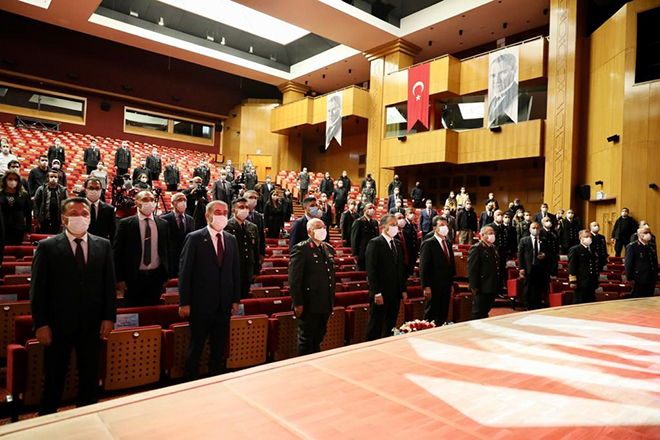 İmamoğlu’nun ardından konuşan Vali Yerlikaya ise duygularını, “Onu rahmetle, saygıyla anıyoruz. Cumhuriyet’imizin banisi Gazi Mustafa Kemal Atatürk’ün hayatı, olağanüstü mücadelelerle geçmiş. En zor dönemde dahi inancını, milletine olan güvenini hiçbir zaman kaybetmemiş. Kısa hayatında Türkiye Cumhuriyeti’ni kurması, vatanı kurtarması, Misak-ı Milli hudutları içerisinde, bütün vatandaşlarımızla birlikte, bütün milletimizle beraber yedi düvele meydan okuması, inkılaplarıyla, devrimleriyle, medeni-muasır milletlerin seviyesine çıkma hedefiyle beraber bizlere bu vatanı emanet etmesi… Onun devlet adamlığı, askeri kişiliği, bilime olan aşıklığı, milletiyle ortak idealler noktasında kenetlenmesi, bizlere yol gösterici olmuştur” sözleriyle dile getirdi.