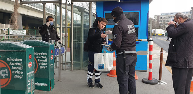 Araç şoförleri ve güvenlik görevlileri, maskesiz yolculara vererek İstanbulluları toplu ulaşım araçlarına maskeli binmeleri konusunda uyardı. Yolcuların da uygulamadan memnun olduğu gözlendi.