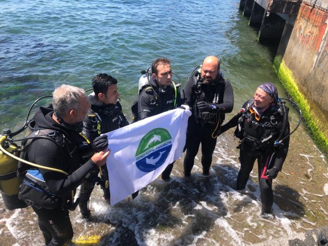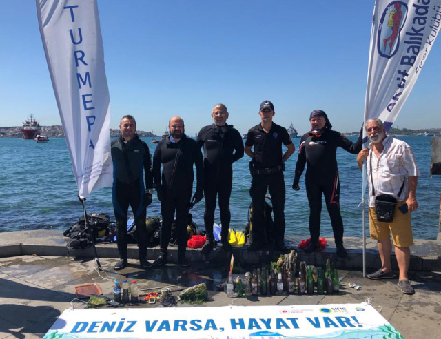 Deniz Temiz Derneği/TURMEPA, Beşiktaş’ta gerçekleşen kutlama programı çerçevesinde bu sene de Boğaz’ın derin sularına dalarak deniz dibi temizliği yaptı.