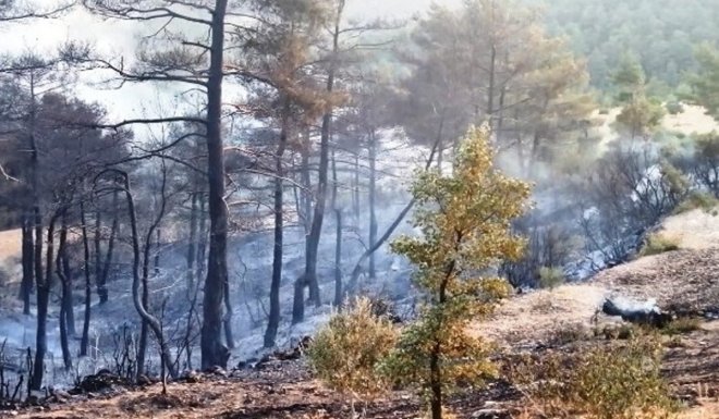 Dün (Pazar), gün boyunca hızla ilerleyen alevler Armutalan Mahallesi'nin Sekine Evren çeşmesi bölümünden yerleşim bölgelerine karşı ilerlemeye başlayınca söndürme işçileri, arazözler ve vatandaşların büyük gayreti ile yangının önü saat 23.30 civarında kesildi. Sabaha kadar sürdürülen özverili çalışmalarla alevler kontrol altına alındı. Yine aynı şekilde Çiftlik Koyu ve Kumlubük'te halkın büyük desteğiyle alevler yerleşim merkezlerine inmeden yangın kontrol altına alındı. Kumlubük'te küçük bir otel yandı.