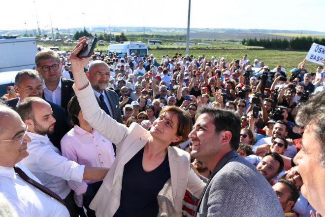 4 yıl 11 ay hapis cezası Yargıtay tarafından onanan CHP İstanbul İl Başkanı Canan Kaftancıoğlu, Silivri Cezaevi'ne gönderildi. Kaftancıoğlu, işlemlerin ardından denetimli serbestlik kapsamında serbest bırakıldı. Edinilen bilgilere göre; cezaevi çıkışında kendisini bekleyen kalabalığa seslenen Kaftancıoğlu, "Yarın 16 milyon İstanbullunun iradesini yargılamaya kalkacaklar. Yarın Ekrem başkanımızın mahkemesi var. Hep birlikte oradayız. Uzun lafın kısası, terleyeceğiz, yorulacağız ama bildiğim bir şey var ki, inanan insanların yorgunluğunu tek bir şey giderebilir. O da çalışarak, bu ülkeye nefes aldırmak" dedi.