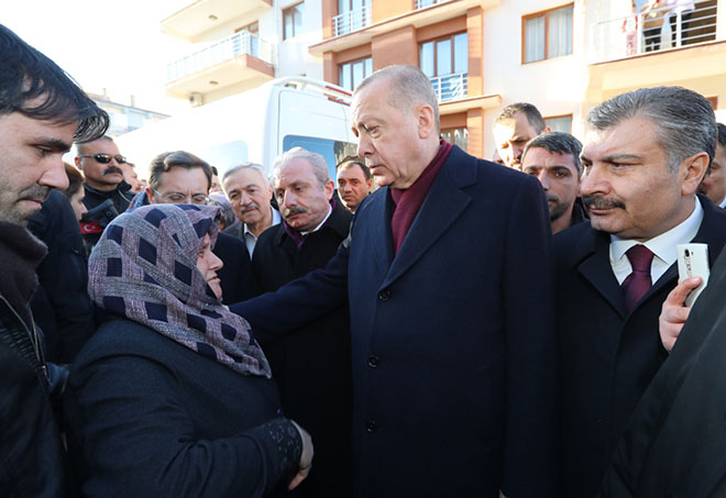 Cenaze töreninin ardından Elazığ Sürsürü Mahallesi’ne geçen Cumhurbaşkanı Erdoğan, burada yıkılan Dilek Apartmanı’nın enkazında yürütülen arama-kurtarma çalışmalarını bir süre takip etti. Yetkililerden yürütülen çalışmalar hakkında bilgi alan Cumhurbaşkanı Erdoğan, vatandaşlarla da sohbet ederek geçmiş olsun dileklerini iletti. Cumhurbaşkanı Erdoğan, daha sonra Mustafa Paşa Mahallesi’nde incelemelerde bulundu.