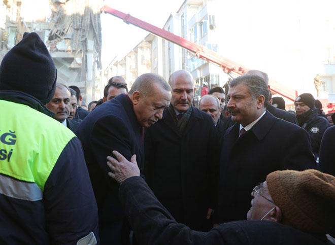 Enkazlardaki çalışmaların yoğun şekilde devam ettiğini, ekiplerin teknik cihazlar ve köpeklerle ses dinlemesi yaparak arama-kurtarma çalışmalarını sürdürdüğünü vurgulayan Cumhurbaşkanı Erdoğan, “İnşallah sonuna kadar bu gayretle devam edecekler, bakan arkadaşlarımız sonuna kadar bunun takipçisi olacaklar. Devletimiz tüm imkânlarını, tüm kurumlarıyla beraber sürdürecek. Bu gayretler neticesinde inşallah ama yaralı ama canlı insanımıza ulaşmanın gayreti içindeyiz” diye konuştu.
