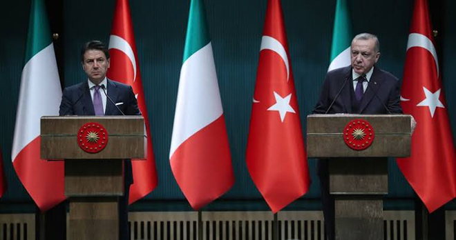 Cumhurbaşkanı Recep Tayyip Erdoğan İtalya Başbakanı Giuseppe Conte ile yaptığı görüşme sonrasında Ankara'da açıklamalarda bulundu. Erdoğan "Libya'daki gelişmeleri, Suriye konusu ve ikili ilişkilerimizi değerlendirme fırsatımız oldu" dedi. Libya'daki ateşkes üzerine önemli değerlendirmelerde bulunan Başkan Erdoğan, "Libya'daki ateşkesin kalıcı bir hal alması için çabalıyoruz' ifadelerini kullanırken İtalya Başbakanı da açıklamasında 'Ateşkes umut verici, kalıcı olmalı' dedi. Erdoğan 'Libya’da bir barış gücü olur mu?' sorusuna verdiği yanıtta "Görüşmeler devam ediyor. Zannediyorum akşam saatlerinde bu görüşmeler nihayete erecektir. Ama olumlu istikamette devam ettiğini az önce arkadaşlarımdan bilgiyi aldım" ifadelerini kullandı.