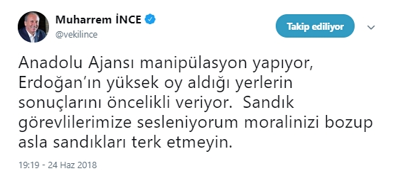 CHP Cumhurbaşkanı adayı Muharrem İnce, AA'nın verileri ile ilgili sosyal medya hesabından açıklaalarda bulundu.