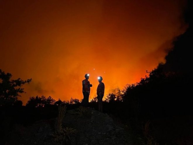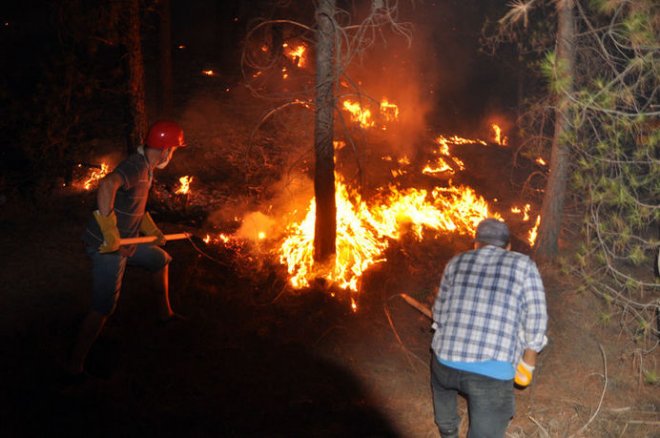 Muğla’nın Marmaris ilçesinde 29 Temmuz günü başlayan ardından Bodrum, Milas, Köyceğiz, Seydikemer, Kavaklıdere ve Menteşe’de devam eden yangınlarla mücadele devam ederken yangının 9. Gününde alevler yine gecenin karanlığını aydınlattı. Ülkenin dört bir yanından gelen itfaiye ekipleri yangınlara karşı yoğun bir mücadele verirken binlerce dönüm ormanlık alan cayır cayır yandı.