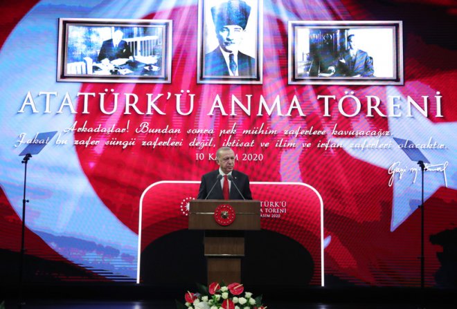 Cumhurbaşkanı Recep Tayyip Erdoğan, Beştepe Millet Kongre ve Kültür Merkezi'nde Gazi Mustafa Kemal Atatürk’ün ebediyete irtihalinin 82'nci yıl dönümü dolayısıyla Atatürk Kültür, Dil ve Tarih Yüksek Kurumu tarafından düzenlenen Anma Töreni’ne katıldı.