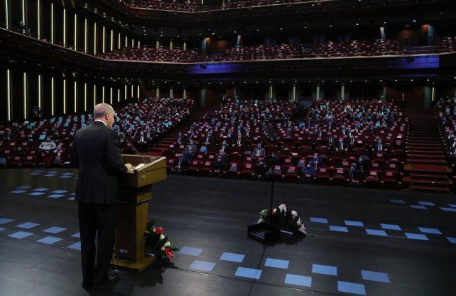 Uluslararası kredi derecelendirme kuruluşlarının notlarının objektif kriterlere göre verilmediğini, Batı basınında Türkiye’ye yönelik eleştirilerin gerçek ve samimi temellere dayanmadığını, Türkiye’ye karşı haksız, hukuksuz, adaletsiz girişimlerde bulunulduğunu anlatan Cumhurbaşkanı Erdoğan, değerlendirmelerini şöyle sürdürdü: “Demokrasinin bayraktarlığına soyundukları hâlde, sırf Türkiye meşru yönetimleri veya zulüm gören masumları savunuyor diye darbecilerin ve zalim rejimlerin yanında yer alanları hep birlikte takip ediyoruz. Böyle bir iklimde ekonomide yaşadıklarımızın kendi mecrasının ürünü olduğunu kim iddia edebilir? Dünyada zaten yaşanmakta olan genel ekonomik sıkıntılar Koronavirüs salgınıyla birlikte daha da ağırlaşırken, Türkiye en az kayıpla süreci yönetmeyi başarmıştır. Buna rağmen ısrarla ekonomimizi kötüleyenlerin gayesinin üzüm yemek değil bağcıyı dövmek olduğunu anlamak için öyle çok da derin teknik analizlere gerek yoktur.”
