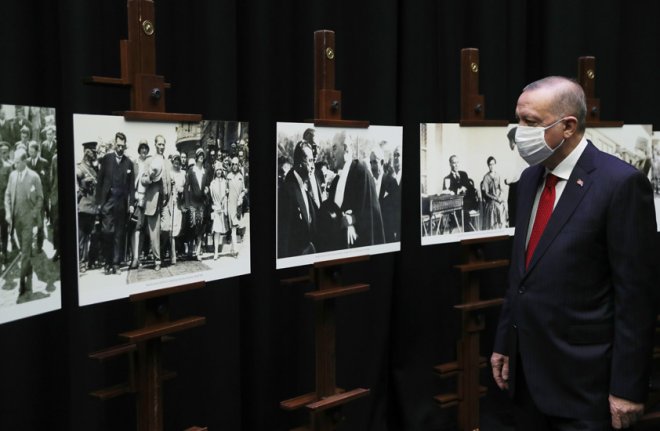 “Ülkemizin demokrasi ve kalkınma mücadelesini benim manevi mirasım ilim ve akıldır diyen Gazi Mustafa Kemal’in arzu ettiği şekilde yürütüyoruz” diyen Cumhurbaşkanı Erdoğan, “Gazinin bu tavsiyesine uygun şekilde ilim ve akıl yolunda giderek hatırasını yaşatmak yerine onu dogmalaştırmak suretiyle mirasının içini boşaltmaya çalışanları da milletimizin takdirine havale ediyoruz” değerlendirmesinde bulundu.