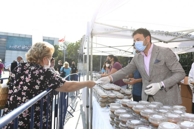 Beşiktaş Belediyesi, bolluk, bereket, paylaşım, birlik ve beraberliğin simgesi Muharrem Ayı’nda vatandaşlara aşure dağıttı. Edinilen bilgilere göre; Beşiktaş Belediye Başkanı Rıza Akpolat da Barbaros Meydanı'nda kurulan çadırda mesai arkadaşlarıyla beraber Beşiktaş Belediyesi’nin kendi mutfağında hazırlanan aşure lokmasını komşularına ikram etti. Pandemi nedeniyle sosyal mesafe kurallarına dikkat edilerek gerçekleşen aşure dağıtımında 22 bin aşure dağıtıldı.