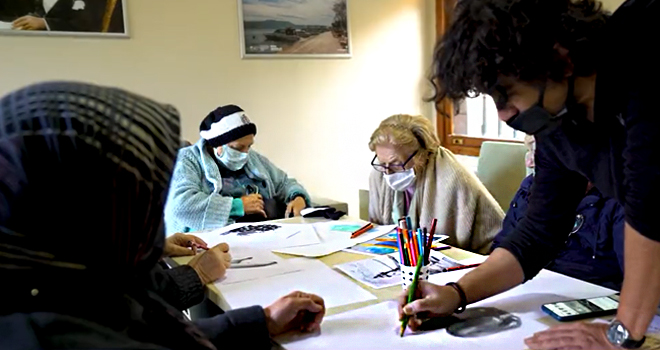"“Her şeyi unutuyorsunuz burada, muhabbet ediyoruz, şarkılar dinliyoruz.” Ulus Yaşam Evimizin marifetli elleri, resim etkinliğinde bir araya geldi."