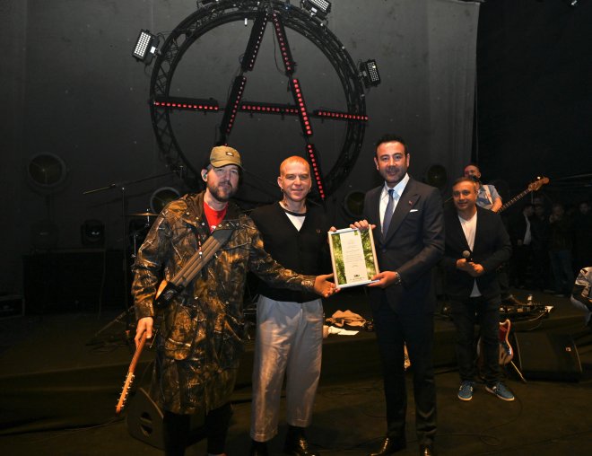 Başkan Rıza Akpolat’ın Athena Grubu üyeleri adına TEMA’ya yaptığı fidan bağışı plaketini sunmasının ardından konser tüm coşkusuyla devam etti.