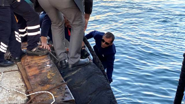 Vapur iskeleye yanaştıktan sonra iskeledeki görevliler ve vatandaşların yardımı ile şahıs iskeleye çıkartıldı. İskeleye çıkarılan şahsa hemen polar verilerek üzeri örtüldü.