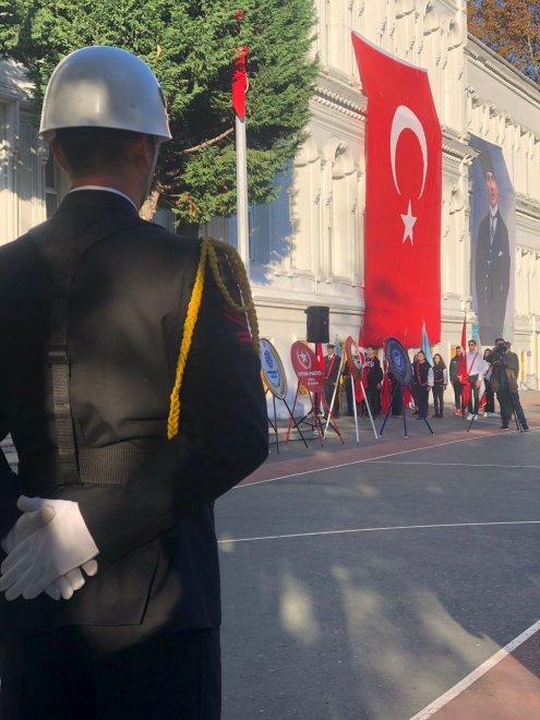 Beşiktaş Kaymakamlığı'ndan yapılan paylaşımda, "Büyük Önder Gazi Mustafa Kemal Atatürk’ün ebediyete irtihalinin 84. yıl dönümünde, Beşiktaş Anadolu Lisesi Atatürk Anıtı önünde çelenk sunma töreni gerçekleştirildi." ifadelerine yer verildi.