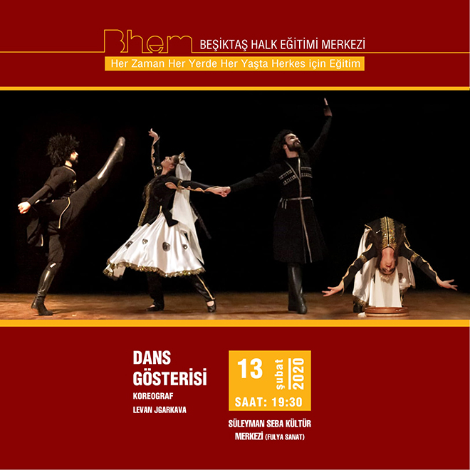 Koreograflığını eğitmen Levan Jgarkava’nın yaptığı ve Anadolu’nun çeşitli ezgilerini içinde barındıran “Anadolu Halk Dansları Gösterisi” birbirinden yetenekli dansçılarıyla 13 Şubat Perşembe günü saat 19:30’da Süleyman Seba Kültür Merkezinde gerçekleştirilecek.