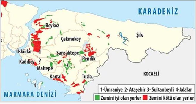 Olacak büyük bir depremde faya yakın ilçelerdeki yıkım aynı oranda olmayacak. Çünkü, İstanbul zemin haritasına bakıldığında zemini en sağlam ilçelerin fay hattına yakın olsa sa mega kentin Anadolu Yakası'nda olduğu görülüyor.