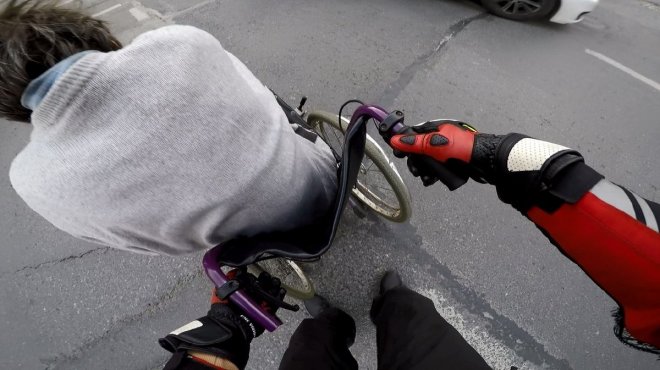 Motosikletin yol kenarına park eden Redkan, yardıma koştu. Engelli kişiyi yerden kaldıran Redkan, daha sonra motosikletine binerek yoluna devam etti. O anlar ise Redkan’ın kask kamerasına yansıdı.
