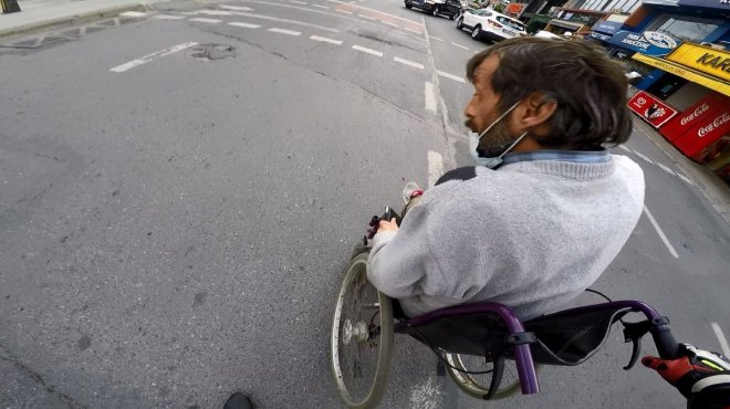 İstanbul Beşiktaş'ta yolun ortasında tekerlekli sandalyeden düşen engelli kişiyi çevredekiler seyretmekle yetinirken yaklaşık 150 metre uzakta bulunan 26 yaşındaki genç yardımına koştu.