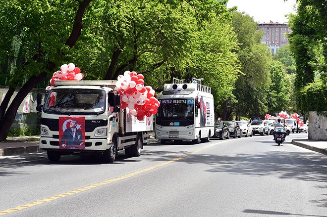 Edinilen bilgilere göre; araçlarla Beşiktaş’ın cadde ve sokakları dolaşıldı. Beşiktaş Belediyesi’nin konvoyunu gören vatandaşlar ellerine Türk bayraklarını alarak balkon ve pencerelerde korteje sevgi gösterisinde bulundu. Beşiktaş Belediye Başkanı Rıza Akpolat da korteje eşlik etti.