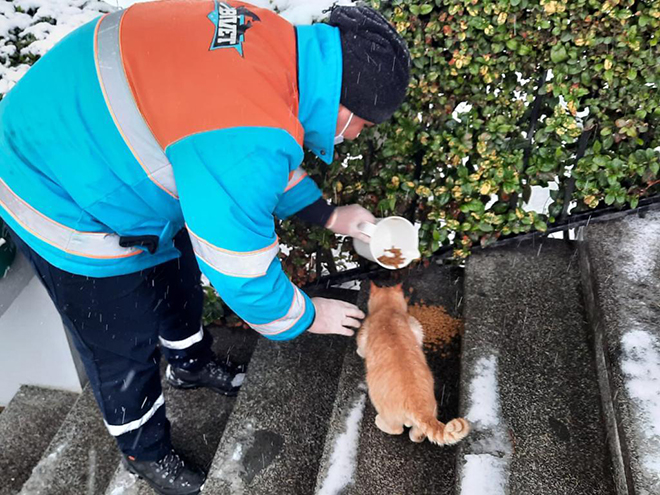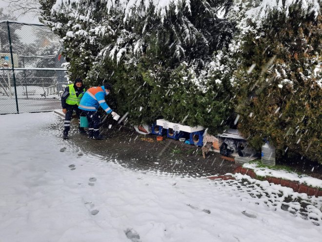 Koronavirüs salgını nedeniyle gerçekleşen hafta sonu yasakları sonrası yiyecek bulmakta zorlanan sokak hayvanları İstanbul’u etkisi altına alan kar yağışı sonrası Beşiktaş Belediyesi Veteriner İşleri Müdürlüğü ekipleri tarafından unutulmadı. Hafta sonu uygulanan sokağa çıkma yasaklarında düzenli olarak hayvanlara su ve mama takviyesi gerçekleştiren ekipler, bu hafta sonu da İstanbul’u etkisi altına alan kar yağışı sonrası can dostlarını unutmadı. Ekipler Beşiktaş’ın dört bir yanında hayvanlara mama ve su takviyesi gerçekleştirdi.