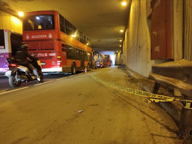 Beşiktaş Balmumcu'da sürücünün direksiyon hakimiyetini kaybettiği çift katlı halk otobüsü tünelde bariyerlere çarptı. Çarpmanın etkisiyle bariyerler otobüse ok gibi saplandı. Bir süre bu şekilde ilerleyen otobüs şoförü tünel den çıktıktan sonra yolun sağında durdu. İhbar üzerine olay yerine itfaiye ve sağlık ve polis ekipleri sevk edildi. Ekiplerin çalışması devam ederken, otobüste bulunan bir yolcunun yaralandığı bir yolcunun da hayatını kaybettiği öğrenildi.