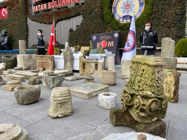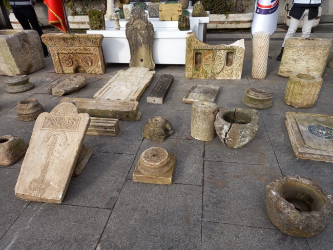 Operasyonda, Bizans ve Osmanlı dönemlerine ait taşınmaz mimari eserlerden söküldüğü değerlendirilen 71 parça çeşitli form ve biçimlerde kültür varlıkları ele geçirildi.