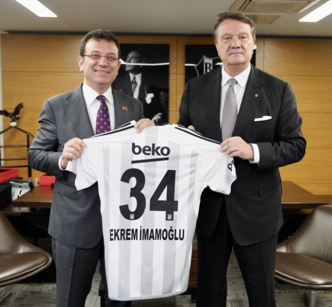 Beşiktaş Jimnastik Kulübü Başkanı Hasan Arat, Tüpraş Stadyumu’ndaki makamında İstanbul Büyükşehir Belediye Başkanı Ekrem İmamoğlu’nu ve Beşiktaş Belediye Başkanı Rıza Akpolat'ı ağırladı.