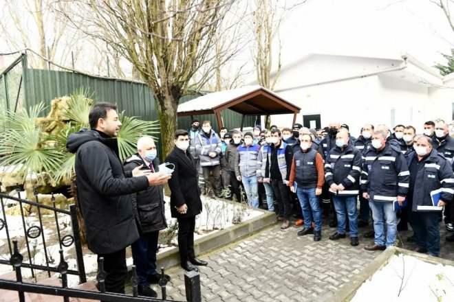 İstanbul'da etkili olan kar yağışı süresinde gece gündüz soğuk demeden 7/24 çalışan emekçilere teşekkür etti. Başkan Akpolat, temizlik işleri personeli ile bir araya geldi ve çalışmaları değerlendirdi. Gece gündüz canla başla çalışan tüm ekiplere teşekkür etti.