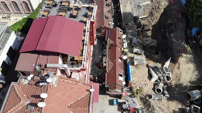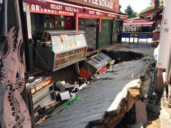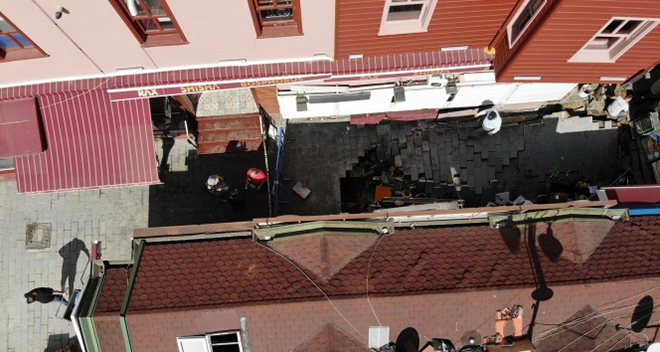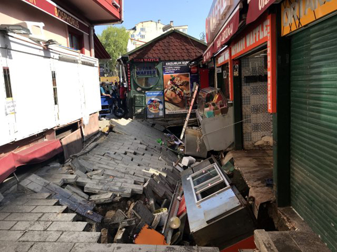 Beşiktaş'ta araç trafiğine kapalı sokakta yolun çökmesi nedeniyle 16 kumpir dükkanı boşaltıldı.