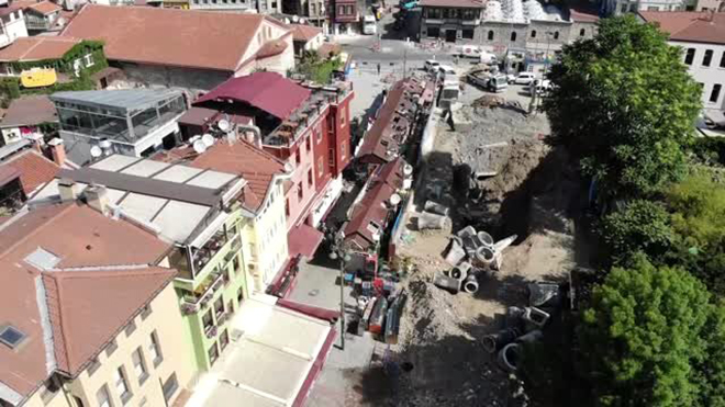 Beşiktaş Ortaköy’de kumpircilerin olduğu sokakta çöken yol havadan görüntülendi. Görüntülerde, yan tarafta bir inşaat alanın olduğu ve kazı yapıldığı görülüyor. Ekiplerin çalışmasının devam ediyor. Dün gece saat 23.30 sularında Beşiktaş Ortaköy Mecidiye Köprüsü Sokak Kumpirci dükkanlarının olduğu yerde henüz bilinmeyen bir nedenle yolda göçük meydana gelmişti. Kumpir almaya çalışan 1 kadı ise hafif yaralanmıştı. Göçüğün olduğu yol bugün havadan görüntülendi. Görüntülerde, ekiplerin çalışmasının devam ettiği görülüyor. Ayrıca, yan tarafta bir inşaat alanın olduğu ve kazı yapıldığı görüldü.