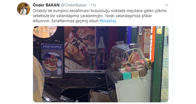 Beşiktaş Kaymakamı Önder Bakan, Ortaköy'de meydana gelen olayın ardından Twitter hesabından paylaşımda bulunarak, aşağıdaki ifadelere yer verdi:
