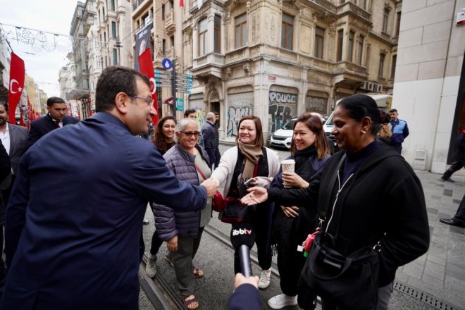 İBB Başkanı Ekrem İmamoğlu, önceki gün terör saldırısıyla sarsılan İstiklal Caddesi esnafıyla buluşmaya bugün de devam etti. Esnafın yanı sıra, caddeyi ziyaret eden vatandaşlar ve turistlerle de sohbet eden İmamoğlu, teröre karşı moralleri yüksek tutmanın önemine dikkat çekti. Turistlerin ve vatandaşların yoğun ilgisiyle karşılaşan İmamoğlu, teröre ve terörizme karşı omuz omuza mücadele edilmesi gerektiğine vurgu yaptı. İmamoğlu, gazetecilerin konuyla ilgili sorularına da cadde üzerinde yanıt verdi. İmamoğlu’na sorulan sorular ve İBB Başkanı’nın verdiği yanıtlar şöyle oldu: